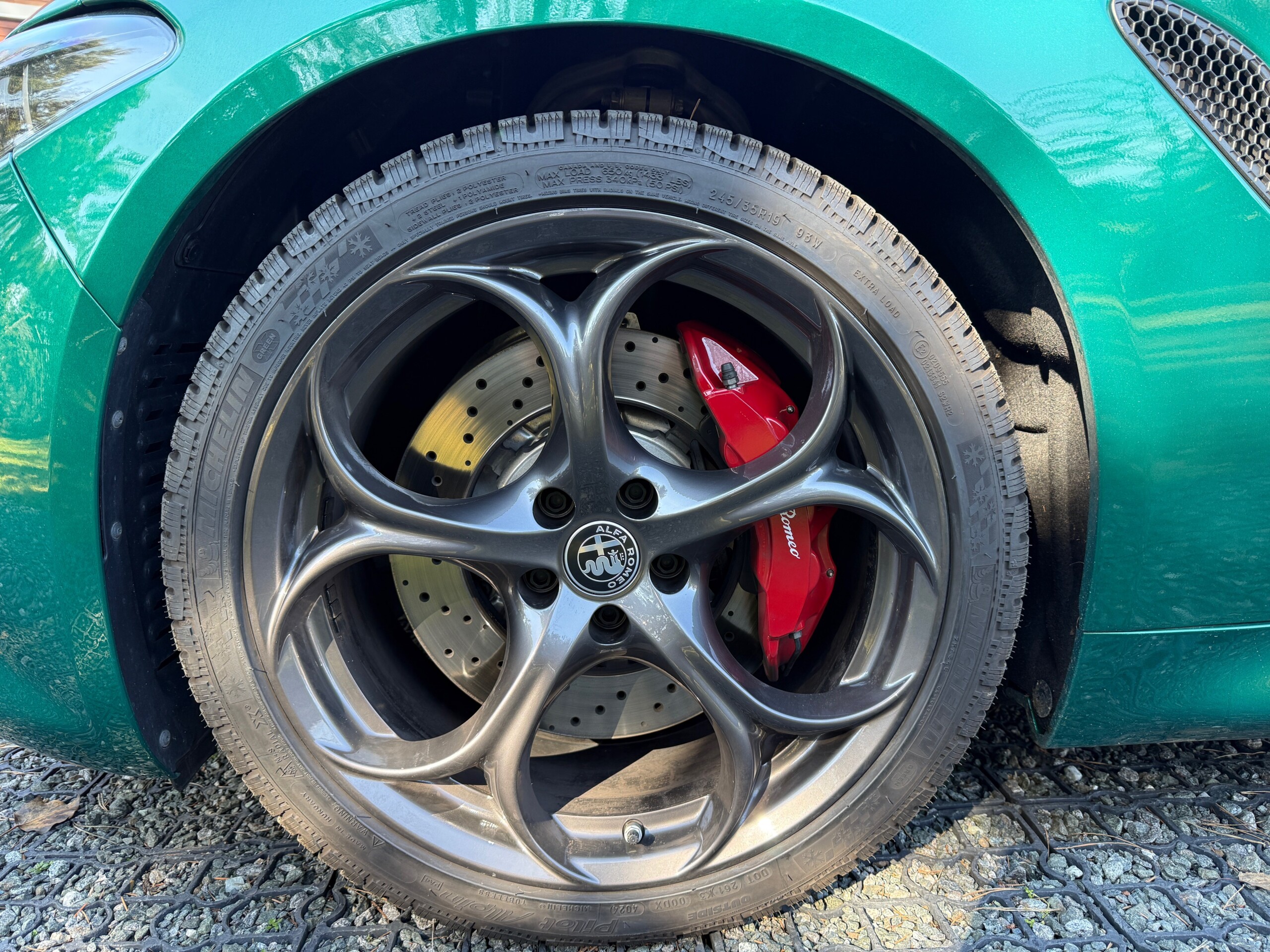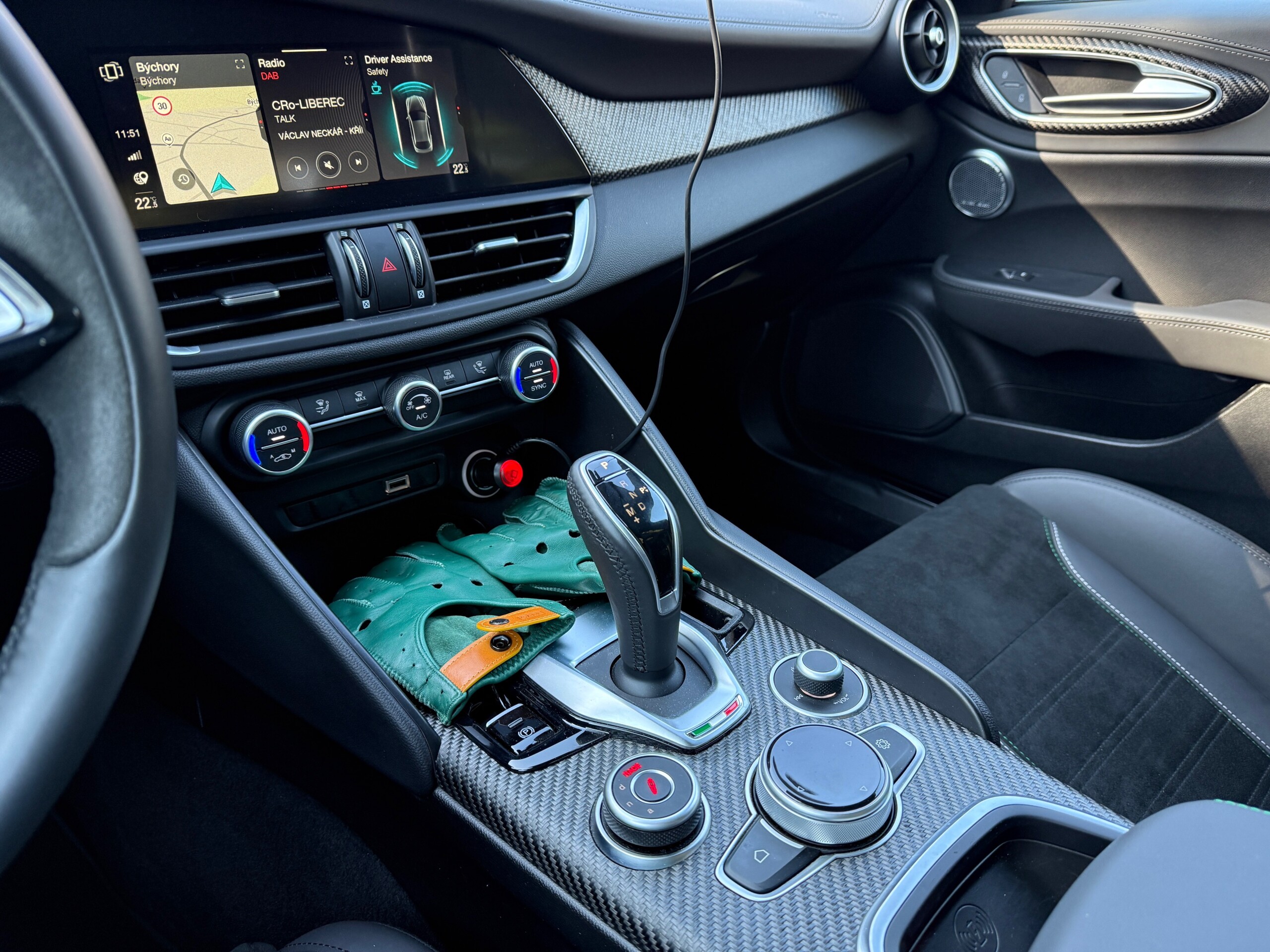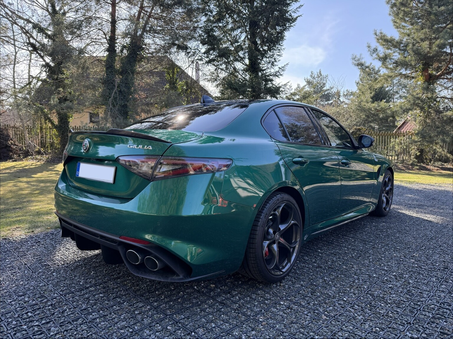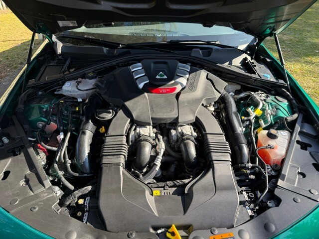 Alfa Romeo Giulia Quadrifoglio MY23, 2.9 V6 BiTurbo 520 k, příplatková Montreal Green, karbonová střecha, Sparco karbonová sedadla, skvělá výbava, záruka do 01/2029. 1. pečlivý majitel, bez okruhů a tvrdého zacházení, pravidelný servis + servis po záběhu. Interiér jako nový, celkově nádherný stav. Jen drobné téměř neznatelné stopy od kamínků na nárazníku. Letní + zimní pneu.