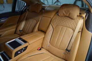 První majitel, koupeno v ČR, nehavarované, ve velice pěkném stavu, nutno vidět! Nejvyšší možná výbava + Originální matná barva - P6A Frozen dark-brown metallic, komfortní prémiová sedadla kůže NAPPA EXPANDED COGNAC, Audiosystém Bowers & Wilkins, Executive Lounge (4místné provedení), ), zadní monitory, noční vidění, laser lights. Ošetřeno a pravidelně udržováno keramickými přípravky, pouze autorizovaný servis BMW CarTec, vč. sady kol BMW 20" na letních pneu. opis výbavy zašlu emailem