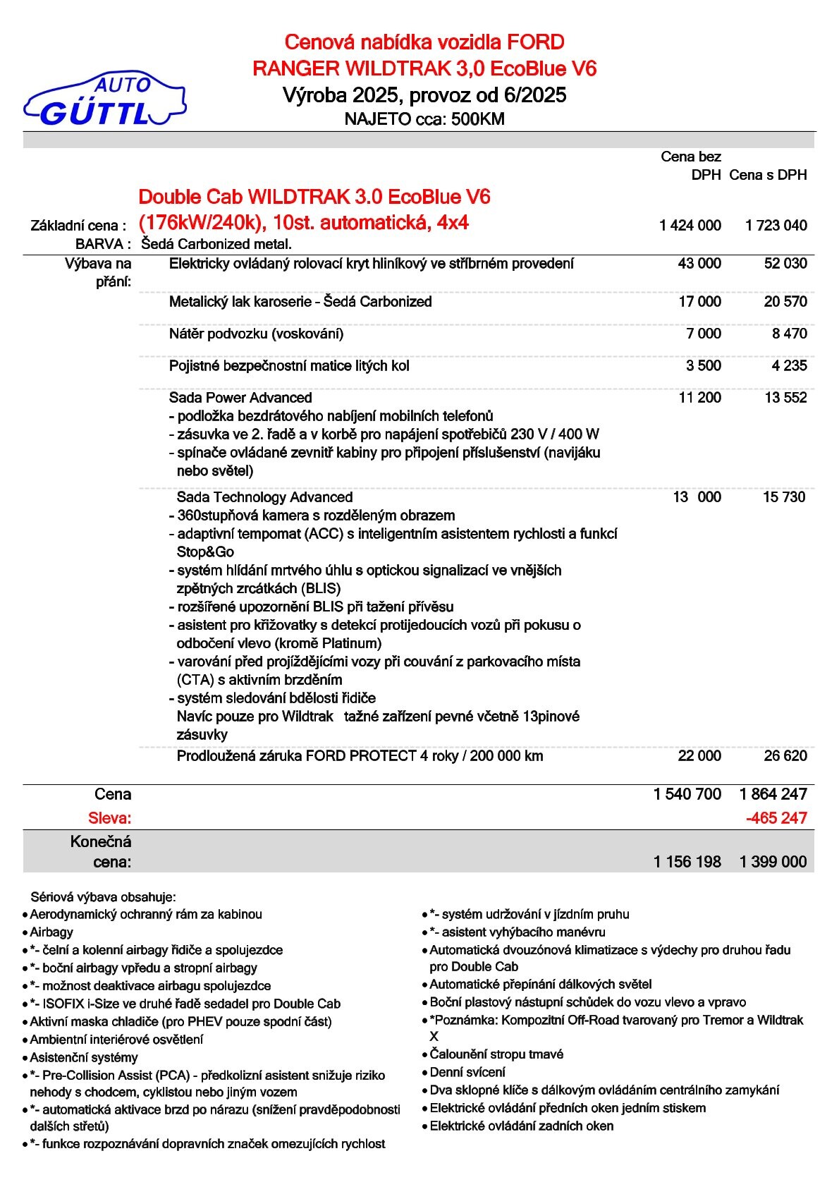Původní cena: 1 864 247.-KčElektricky ovládaný rolovací kryt korby, Sada Technology,Advanced-360° kamera s rozděleným obrazem, Adaptivní tempomat s inteligentním asistentem rychlosti a funkcí Stop&Go, Systém hlídání mrtvého úhlu BLIS, SYNC 4A s 12" dotykovým displejem a konverzačním rozpoznáváním hlasu, bezdrátové připojení Android Auto nebo Apple CarPlay, 10 prémiových reproduktorů B&O, příjem DAB, Rozšířené