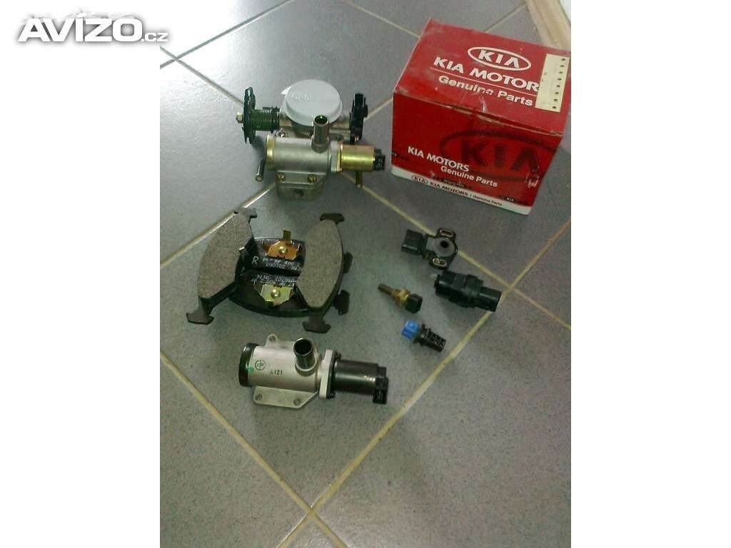 Kia Sephia 1.5, r. v. 1996, 59kW - prodám nový elektromagnetický ventil vzduchu škrtící klapky, nový elektrosnimač tachometru(na převodovce), nové čidlo vzduchu, nový elektrosnimač polohy škrtící klapky. Použité ND - kompletní škrtící klapka s příslušenstvím (ventil vzduchu + snímač škrtící klapky) - použito 28.000km (elektroventil vzduchu volnoběhu, snímač škrtící klapky), original Kia - čidlo teploty (sací potrubí), čidlo teploty - motor, termostat, original sada Kia 8ks hydroštelů.