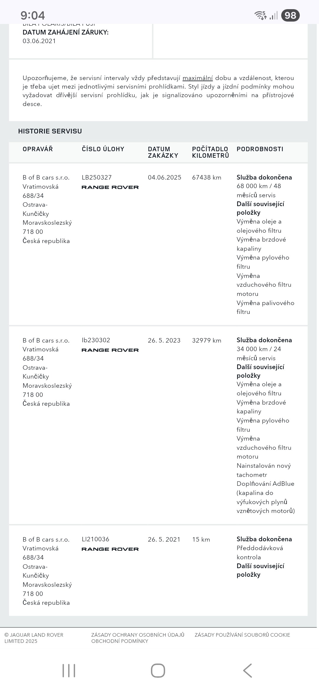 koupeno a servisováno v Land Rover Ostrava.