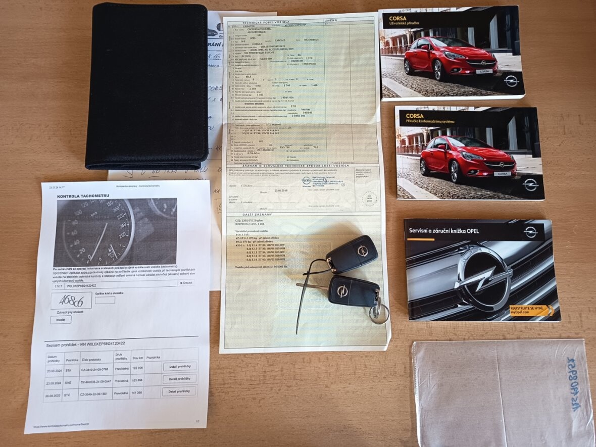 Opel Corsa 1,2i Drive, r. v. 2016, 1.229ccm, 51kW, Euro 5, zakoupeno v ČR Opel Adop Ostrava, 1. majitel v TP, 2x klíč, 2x sady kol Al letní + zimní, servisní kniha, kompletní servisní historie, nehavarováno. STK do 09/2026. Dobrý dobrý technický stav i vzhled. Najeto: 192.000km s garancí ověřeno přes Ministerstvo dopravy ČR a autorizovaný servis Opel. Vše na vozidle funkční. Jezdí velmi dobře. Výbava Drive: vypínatelný airbag spolujezdce, Klimatizace, el okna, el. zrcátka, atd atd.. 74.950 Kč.