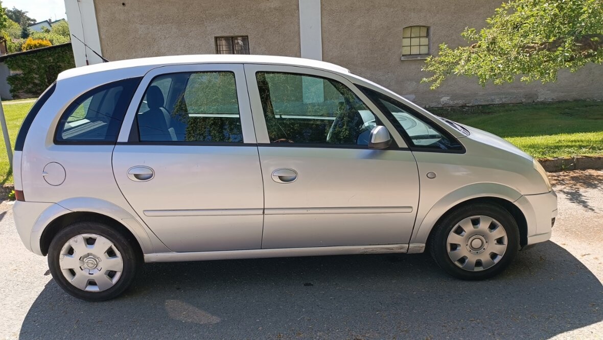 Opel Meriva 1.4 benzín, 66kW, barva šedá/stříbrná, r. v. 2007; airbag, ABS, imobilizér, klimatizace, centrál dálkový, el. přední okna, vyhřívaná zrcátka, rádio, mlhovky, 2 sady kol, tažné zařízení, výškově stavitelné sedadlo řidiče, stavitelný volant, dělená zadní sedadla; najeto 137.600 km, STK do 08/2027. 32.000 Kč.