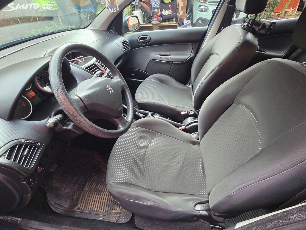 Peugeot 206+ 1.1i (bez turba). STK platná do 06/2027, najeto 142 827 km. Červen 2024: Instalován nový chladič a stabilizační tyčky. V roce 2021 (95 254 km): Provedena kompletní výměna rozvodů. Nové rádio Pioneer (možnost spárování s telefonem / Bluetooth). Instalovaná přední kamera na zpětném zrcátku + zadní kamera. Přidám nové brzdové destičky + Sadu letních ALU kol (hliníkové disky). Poškozený lak (kosmetická vada) v zadní části. Zadní stěrač a vyhřívání zadního okna vyžadují údržbu.