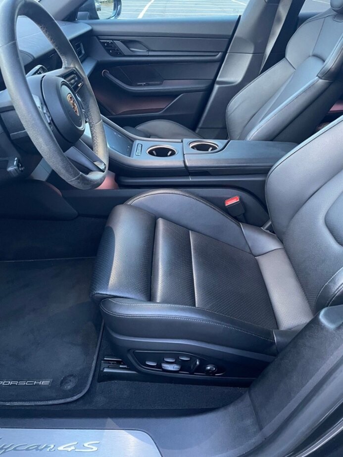 Porsche Taycan, 20" kola Taycan Turbo Aero . Panoramatické střešní okno , zatm. okna za B-sloupkem , Head-Up displej . Přední a zadní parkovací asistent s prostorovým výhledem.- Adaptivní tempomat . Konfigurace sedadel 4+1 . Komfortní sedadla (elektricky nastavitelná v 8 směrech), vyhř. př. sedadla.