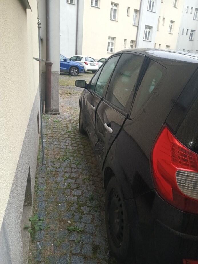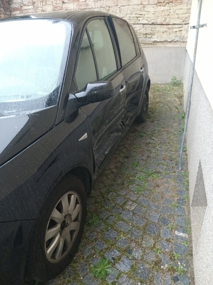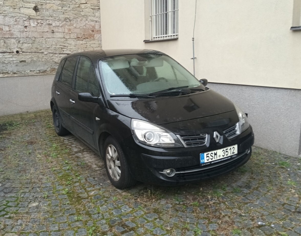 Renault Mégane Scénic, bouraný, pojízdný, pravidelně servisovaný automobil, černé barvy, palivo benzín, rok výroby 2008. Bourané do boku ze strany řidiče, hnutý středový sloupek, poškozené přední i zadní dveře, jinak vše funkční; odstavené v Chrudimi. Cena 25.000 Kč, při realizaci prodeje do týdne sleva 5.000 Kč.