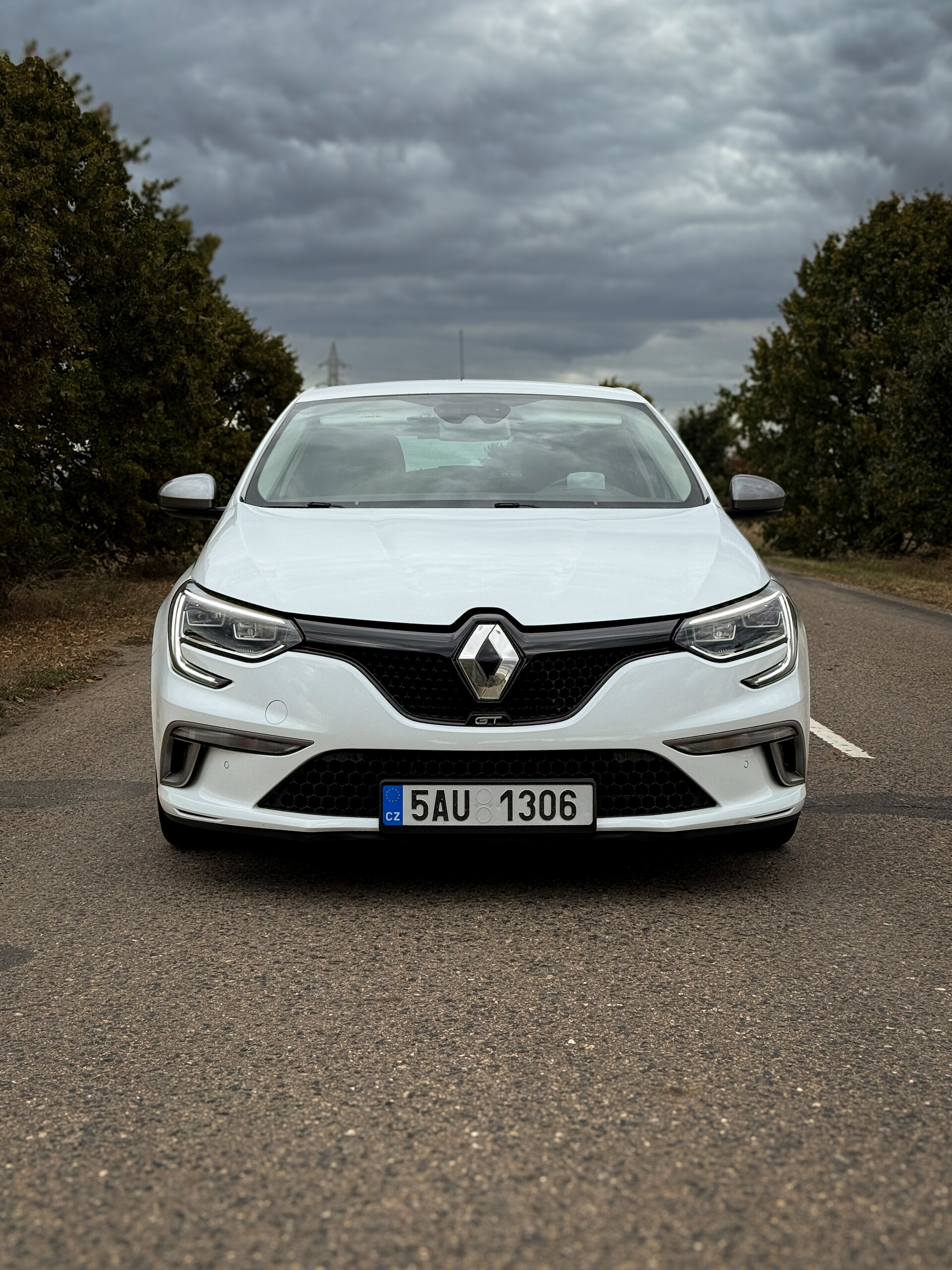 Prodám Renault Mégane IV GT 151 kW, 7st. dvouspojkový automat (mokré spojky), 4Control (aktivní řízení zadní nápravy), bílá perleť. Rok výroby 11/2016, původ ČR, najeto 201 tis. km., originální kola s aktivním TPMS (R17 zimní).