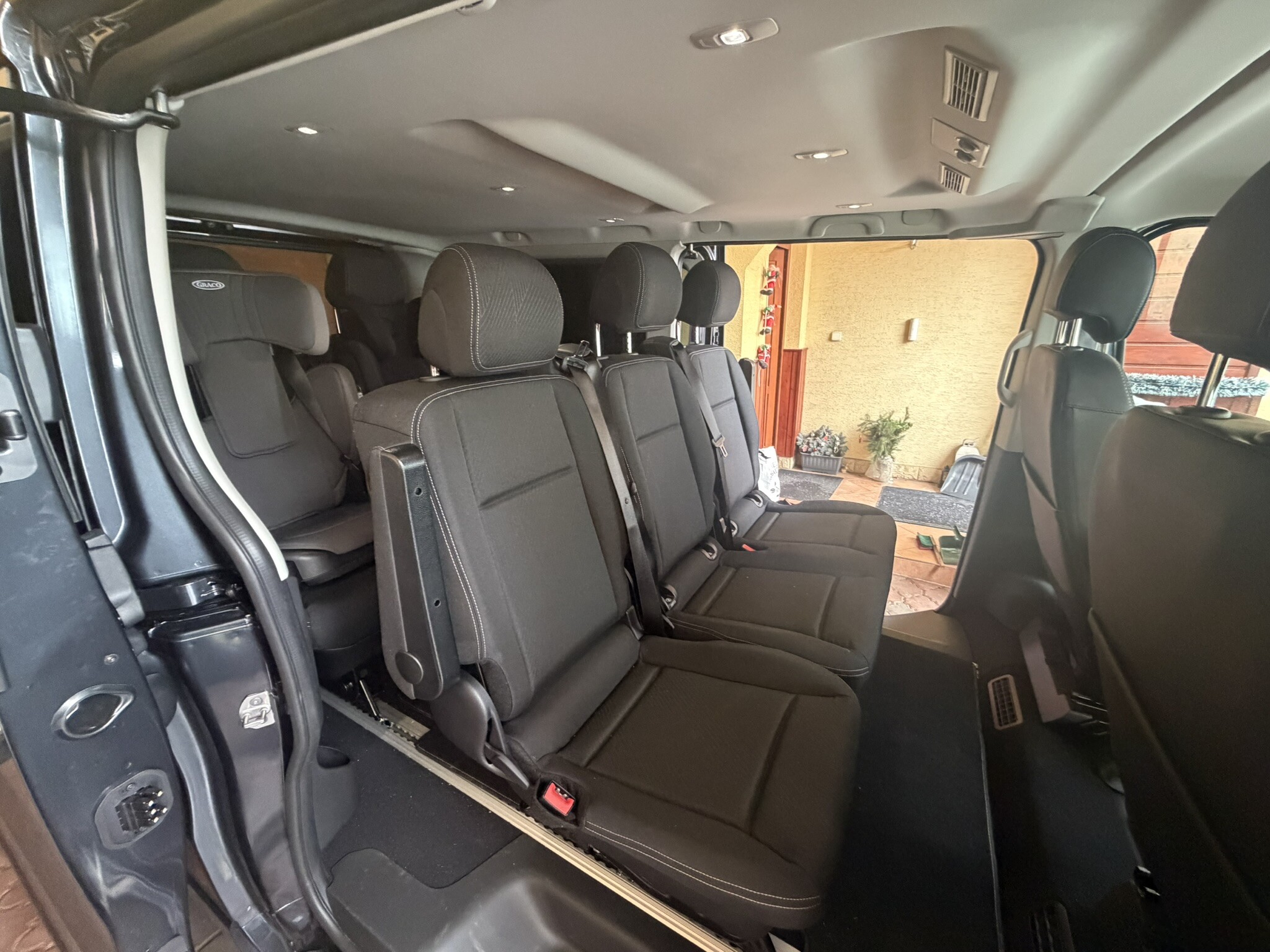 Výbava: přídavné topení, sledování mrtvého úhlu, parkovací senzory, obě boční posuvné dveře, adaptivní tempomat, vyhřívaná sedadla, auto. přepínání světel.