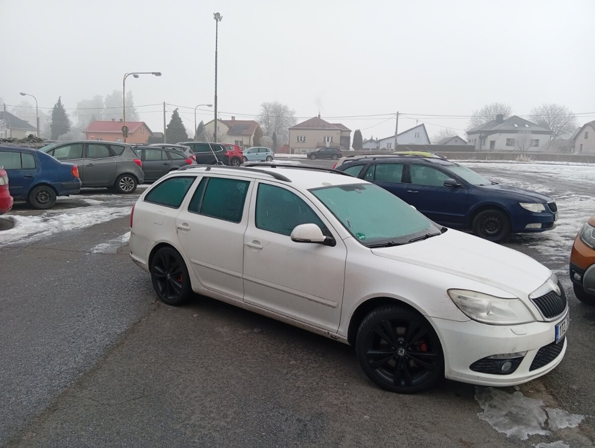 Škoda Octavia combi II RS 2.0TDI, 2009, bílá, motor CEG, najeto 370.000 km, manuál, klima, navi, kožená vyhřívaná sedadla a zrcátka, 18" kola na zimních pneu 225/40R18 Goodyear UltraGrip Ice, nové rozvody v 06/2025, tažné, tónovaná skla, nová STK od 06/2025 do 06/2027. Je v zachovalém stavu, na opravu je čidlo teploty a čidlo hmotnosti nasávaného vzduchu, zimní poškození laku, viz. foto, kontakt telefonicky nebo WhatsApp.