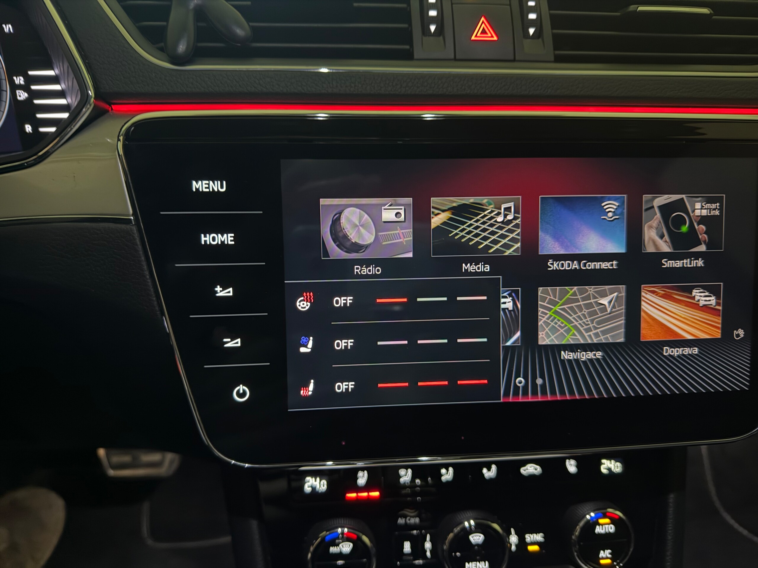 Škoda Superb 3, modelový rok 2020, v plné výbavě Laurin & Klement, 7 - stupňový automat, 4x4, paket Columbus, kola TRINITY R19 – zimní pneu Continental, nastavitelný podvozek, nezávislé topení s dálkovým ovládáním, tří zónová klimatizace, vyhřívané přední okno, vyhřívané sedačky, přední s ventilací, elektricky ovládané tažné zařízení, Carplay, sound systém CANTON, DAB rádio, DVD přehrávač, WIFI zóna, Led světlomety Matrix, motor 2,0 litru, výkon 140 kW, stav tachometru 117201 km. Veškeré servisn