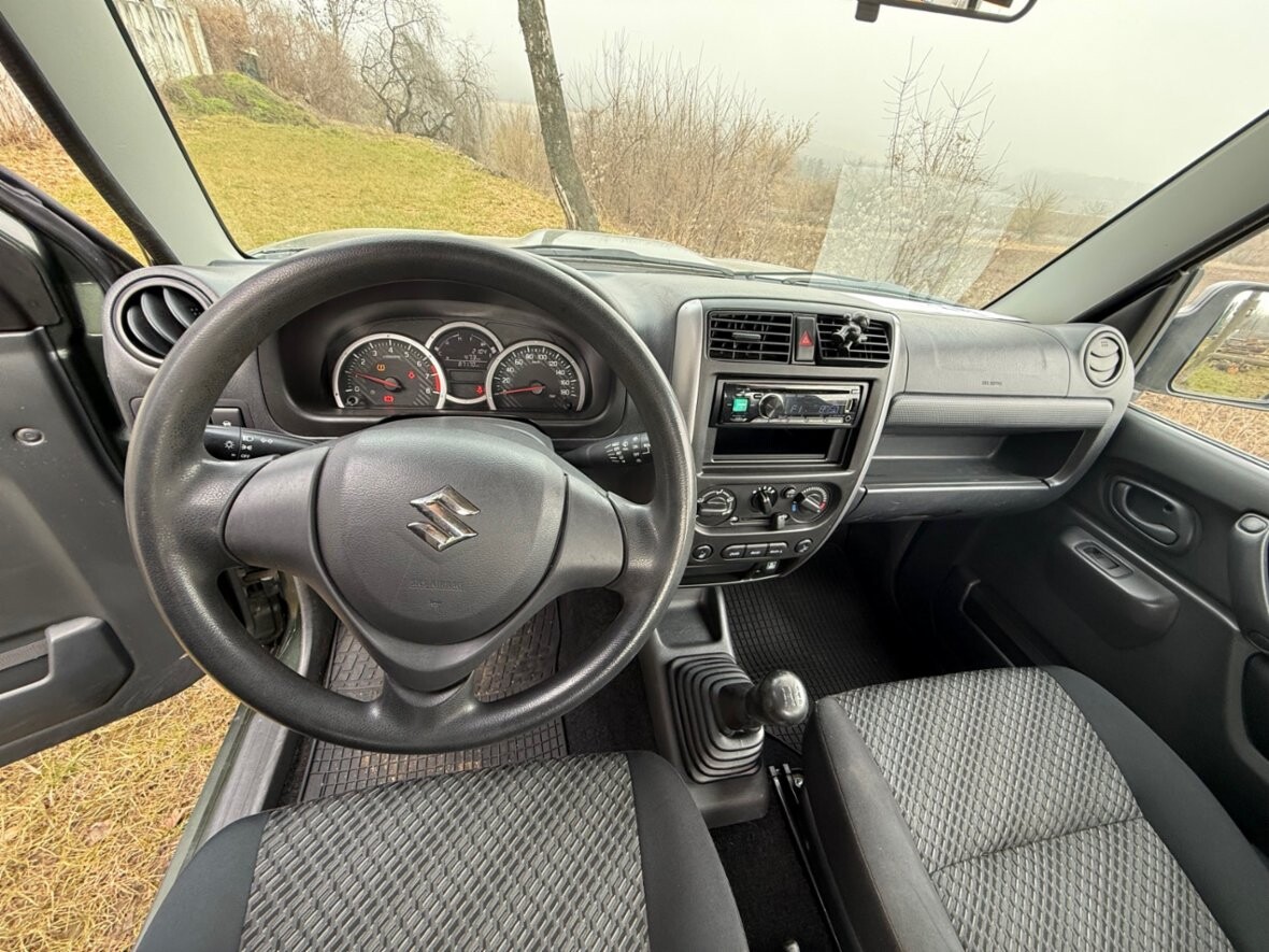 Suzuki Jimny 1.3 VVT Ranger 4x4, r. 7/2017, 63kW, 87.000km, serviska, klimatizace, ABS, tažné, tlačítkové 4x4, zelená metalíza, 2x klíč, 2x Airbag, servořízení, man. ovládání oken a zrcátek. Nové oleje, filtry, svíčky, klínové řemeny a napínací kladka. Nové brzdové kotouče a destičky. Dobré zimní pneu M+S. Vůz po celkové kontrole se zárukou 6 měsíců. Dovozová STK, evidenční kontrola, emise a návod k používání v ceně. Cena 359.000 Kč.