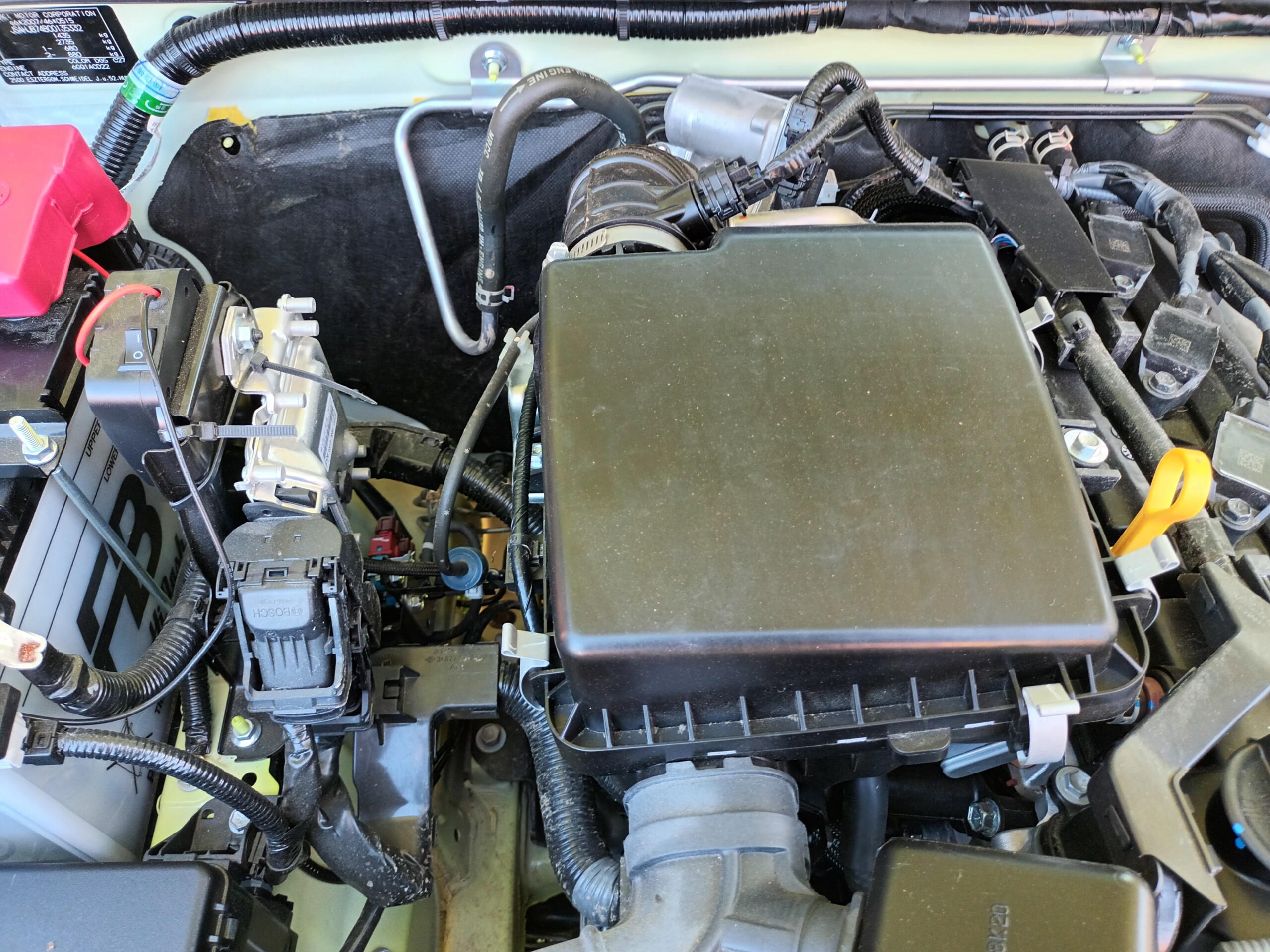 Prodám Suzuki Jimny N1, 1,5 AllGrip, TZ, takřka nejeto, stav tachometru 2762km, garážované, zimní provoz 0km. Terén 0 km. 3-dverovy model, výroba originál Japonsko. Koupeno v ČR, vyroben v Japonsku, 1. majitel. Stav nového vozu. Tažné zařízení Brink.