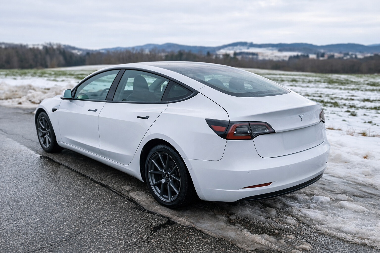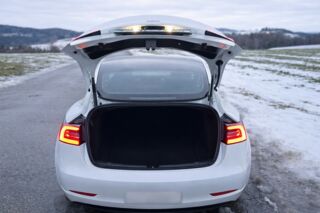 Nabízím svou Teslu Model 3 Long Range (AWD) se dvěma elektromotory a výkonem 366 kW. Tepelným čerpadlem a zadní obrazovkou. Zcela nové zimní pneu.