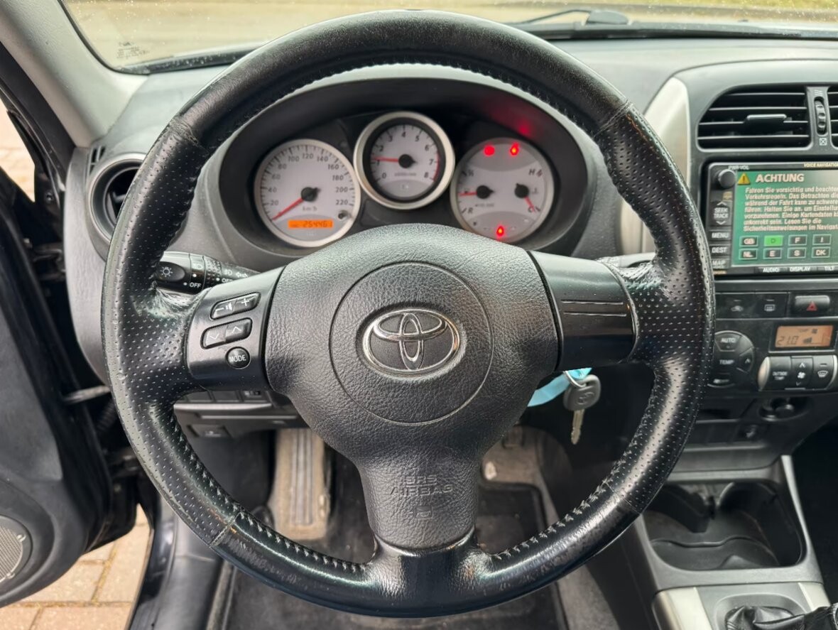 Toyota RAV 4 2.0i Sol benzín 110kW, 254 500 km , 1 998 ccm , (150k), r. v. 03/2005 , ABS, celor. pneu, centrál, el. boč. zrc., el. ovl. okna, immob., Isofix, kož. volant, litá kola, mlhovky, multif. volant, 4x4, navigace, pal. poč., posil. říz., přehr. CD, rgulace prokluzu kol , ruč. podložka, stř. nosič, tuner/rádio. Vyhřívání sedadel.