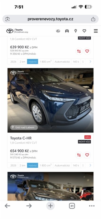 Toyota chr 2023 1,8 Style. Cena 650.000 Kč.