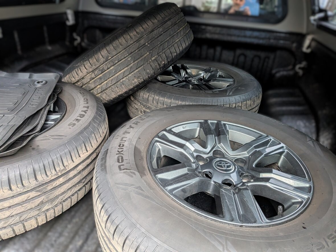 Toyota Hilux 2.8 150kW, r. v. 2024, automat, záruka, 95.000km, koup. v ČR, servisní knížka, platná STK, první majitel, cena bez DPH 895.000,- odpočtová, nehav. K vozidlu je originální sada kol s letními pneu v hodnotě 70tis. Na vozidle byly od nového vystříkány dutiny a podvozek preventivně ošetřen voskem. celý podvozek je chráněn pancířem od ARB v hodnotě 50tis., přídavné LED světlomety, deflektroy bočních skel, po servisu, záruka na vozidlo do 12/2028 nebo do 250tis km doložím.