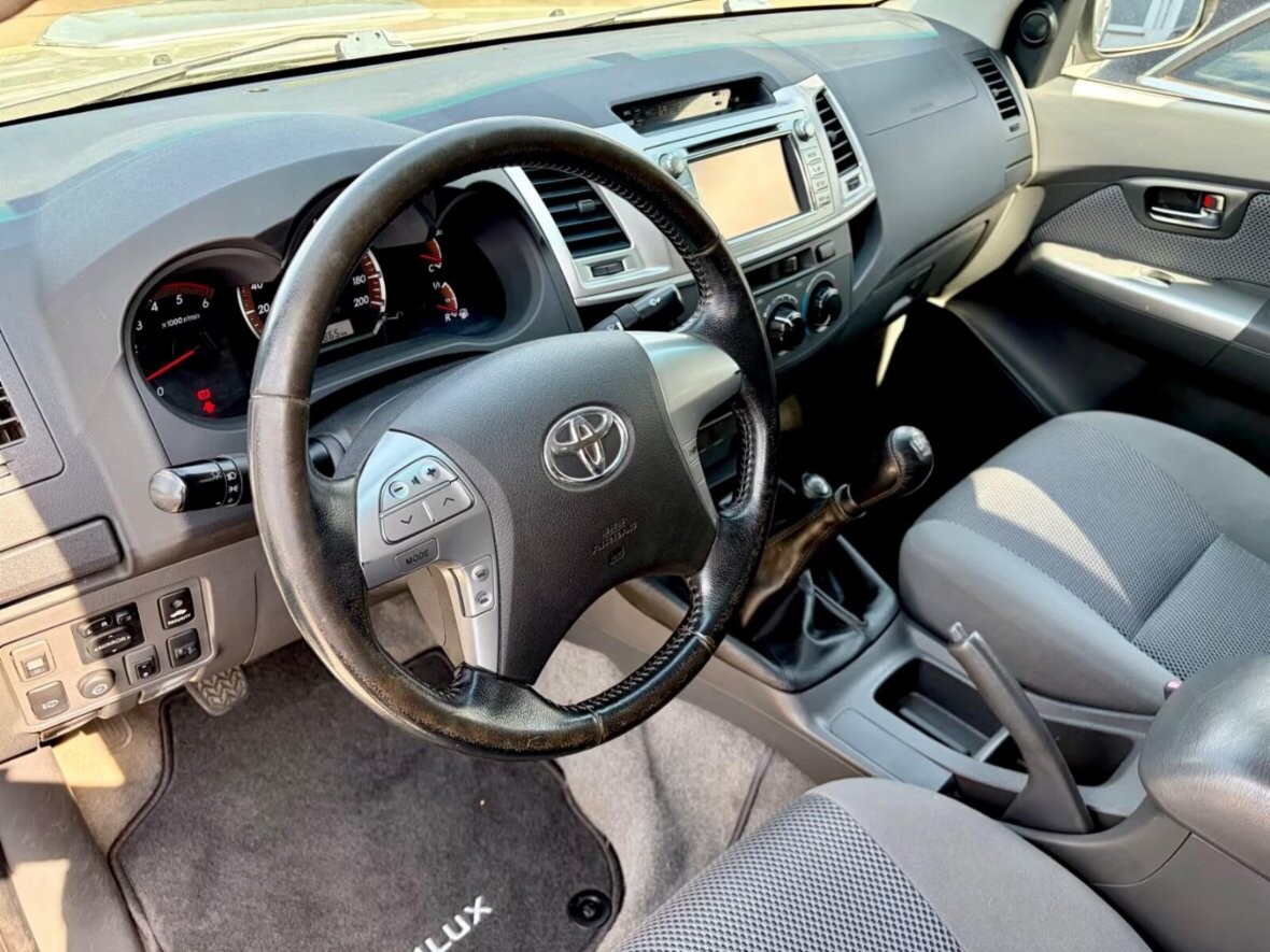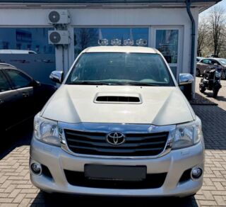 Toyota Hilux 2,5 D4D Life 4x4, 145 000 km 2 494 ccm , 106 kW (144 k) , 4/2013. Kamera , ABS, bluetooth, cel. pneu, centrál, čištění světl., el. boč. zrc., el. ovl. okna, dpf., HF, immob., kožený volant , litá kola, mlhovky, multif. volant, 4x4, pal. poč., port USB, posil. říz., přehr. CD, přípojka přívěsu, ruč. podl., sled. tlaku v pneu, systém alarmu .