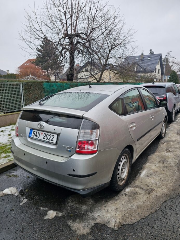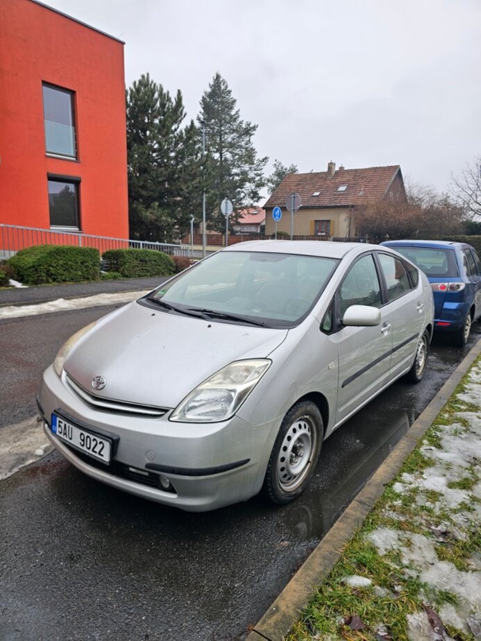 Toyota Prius 1.5 Hybrid, rok výroby 2005. Hybridní pohon (benzín + elektromotor), velmi nízká spotřeba. Auto je pojízdné, běžně používané, interiér i exteriér odpovídá stáří. Najeto 210000 km, STK 10/2026, drobné městské oděrky. Vhodné jako každodenní auto do města i mimo něj.