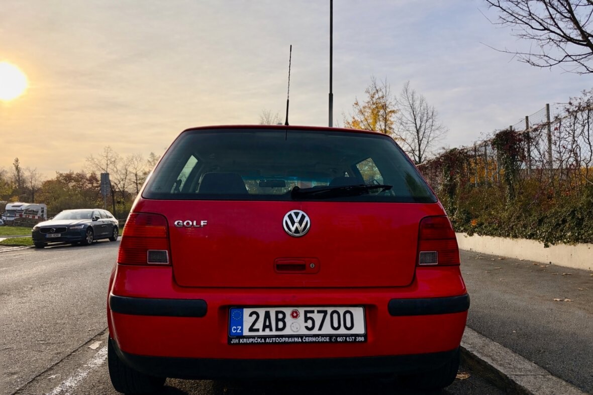 VW Golf IV s benzínovým motorem 1.4 (55 kW). Rok výroby 10/1998. Červený. Auto je nekuřácké, nebyli přepravovány domácí mazlíčci, s plnou servisní knížkou. Najeto 237 000 km - reálný stav. STK platná do 12. 7. 2026. Výbava: střešní okno. 100% původ vozidla - není kradené. Cena 30 000 Kč s poklicemi. Možnost prodeje s litými koly za 33 000 Kč.