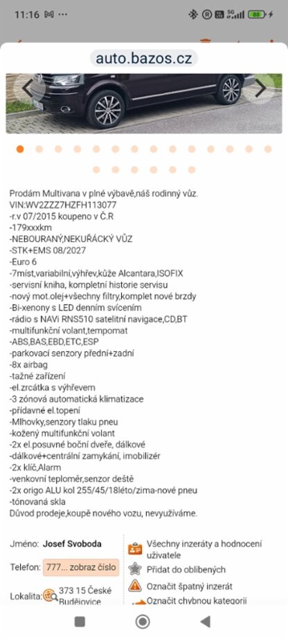 Prodávající si přeje být kontaktován profesionálním prodejcem vozů.