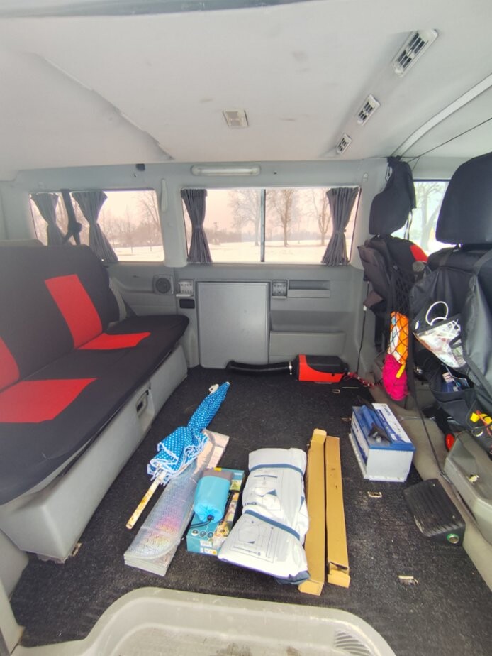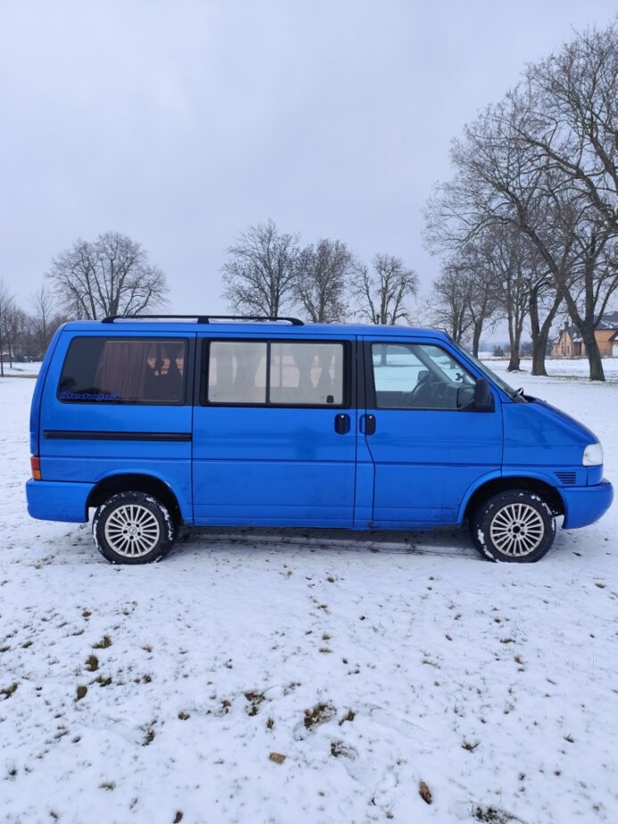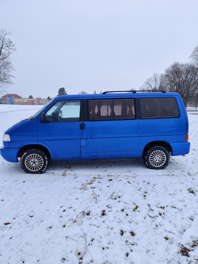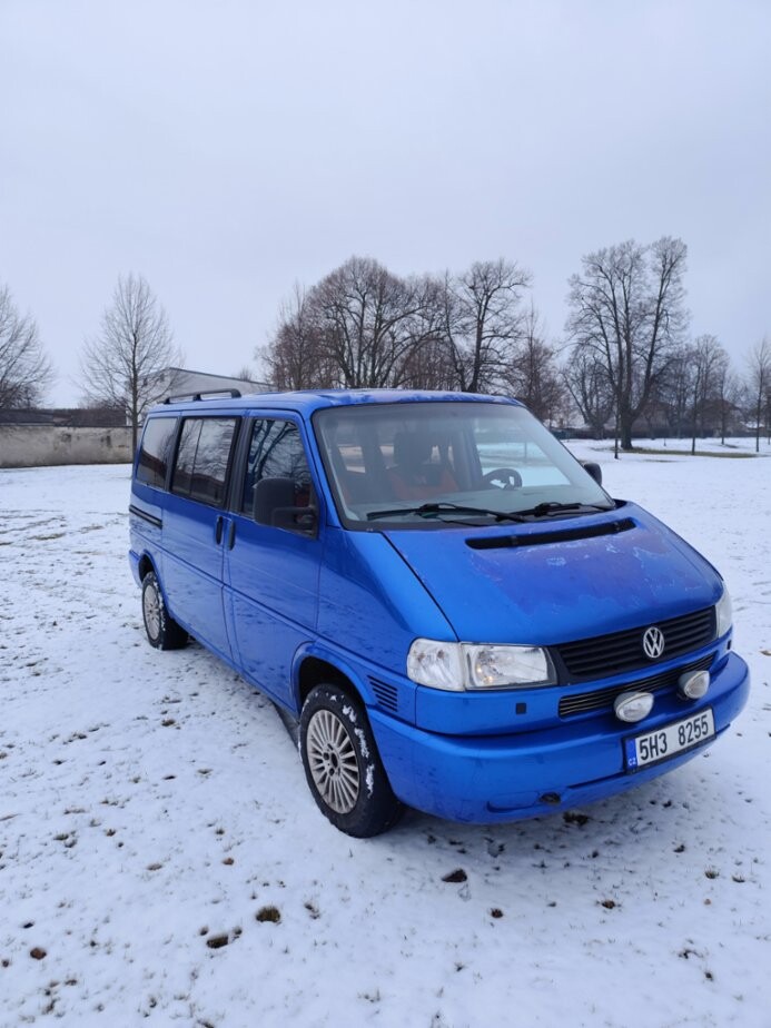 VW Multivan T4, 2.5TDI T4 2,5TDi. Výbava, přísl.: 7 míst, TZ, tempomat, el. okna, climatronic, 12V zásuvky, orig. záclonky, stolek, nez. topení, měnič napětí, 2x autobaterie, orig. držák na kola, 90% zimní sada Al kol, kemp. přístřešek aj. Plně pojízdné, zachovalý interiér, rok 1997, 409.000km, STK 1/2028, rozvody 380 tis., tlumiče, čepy, komplet výfuk, Klasické neduhy odpovídající věku: Nefunkč. centrál spolujezdce a kufru, mírná koroze, vada laku kapota a část střechy.