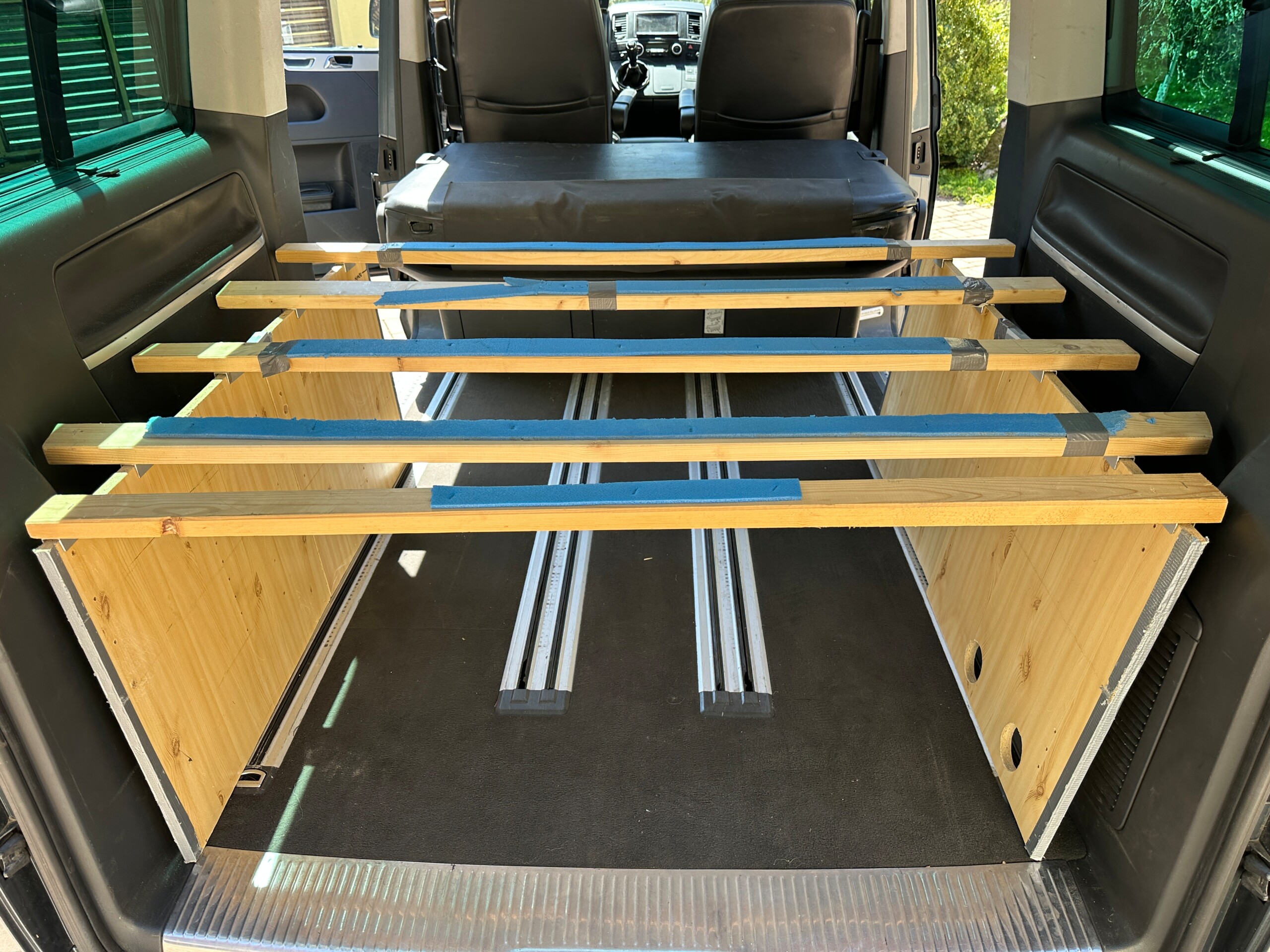 hagusy, příčníky 4x, tažné zařízení, lehká vestavba pro spaní a camping, pevná přepážka za řidičem pro převoz nákladu