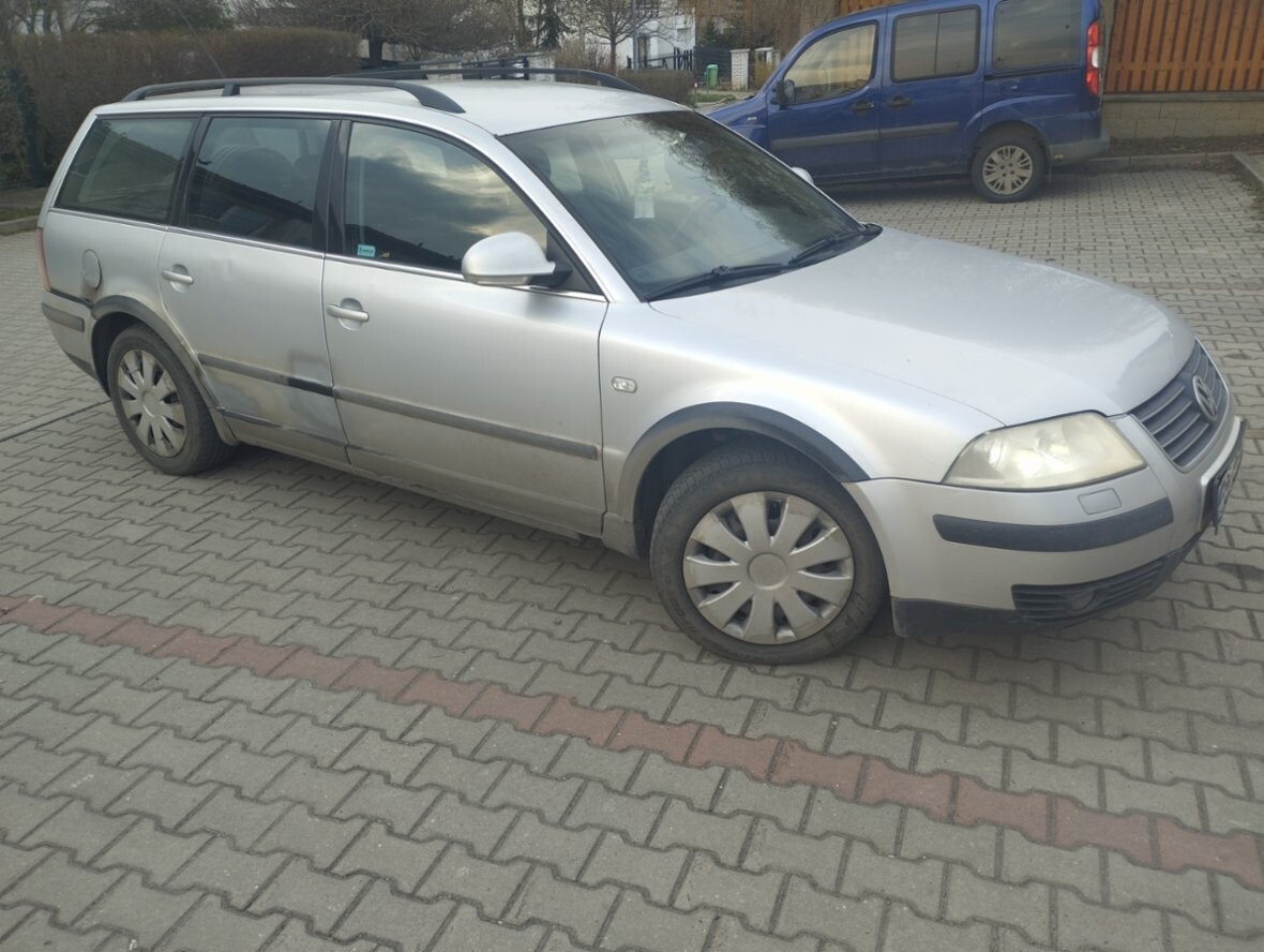 VW Passat 1.9TDI combi, r. v. 11/2003,379.000km. Zak. nové v ČR, 3. majitel, stříbrná metalíza,nejsilnější verze 96kW, servo, 4x el. okna, dig.klimatizace, orig. rádio, poklice, centrální zamykání na DO, ABS, immob., kryt zav. prostoru, letní a zimní pneu, závěs, mlhovky, pal.počítač, české menu, tempomat aj. Spolehlivý,bez koroze, plně pojízdný, STK do 11-2027,spotřeba 5,5 l nafty, Praha.