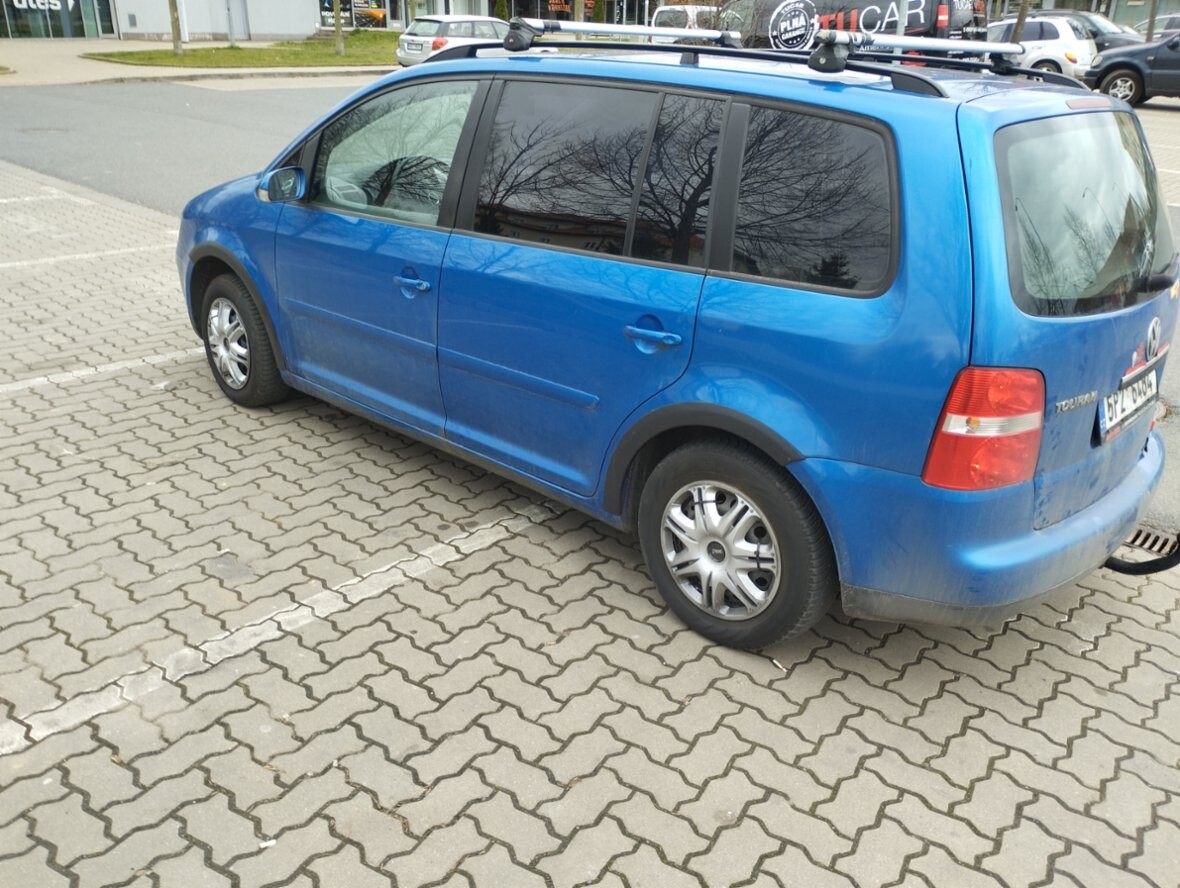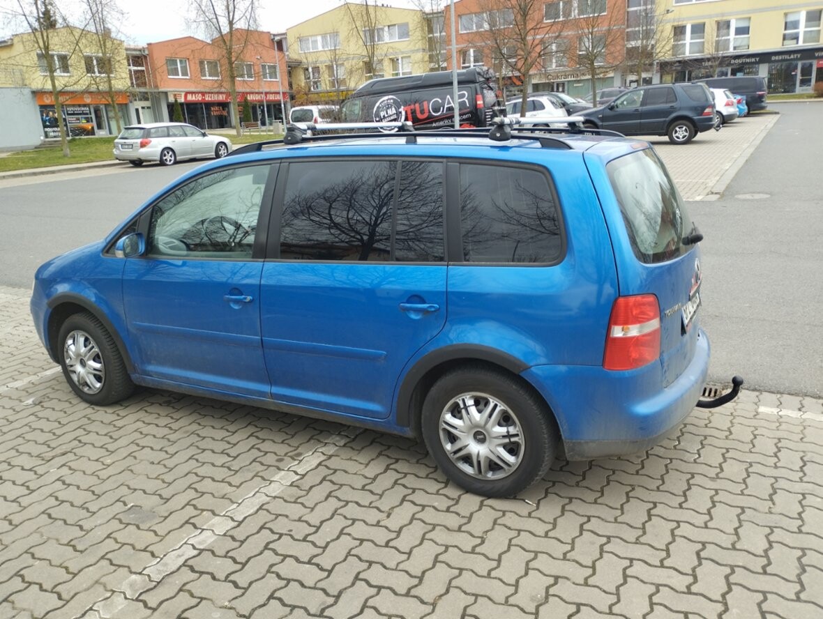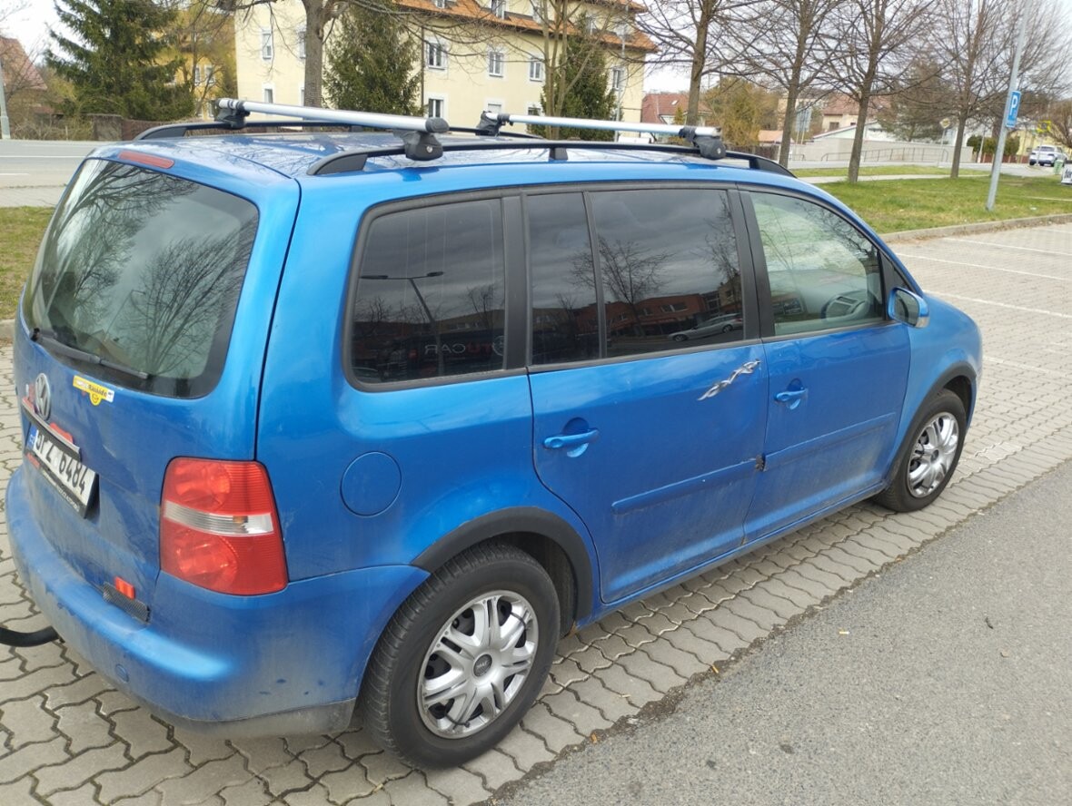 VW Touran 1,9TDI, r. v. 10-2005, 344.000km, 5 míst, 77Kw, modrá met., 6 rychlostí,zakoupeno nové v ČR, airbagy, dig. klima, 4x el. okna, poklice, zahrádka, ližiny, mlhovky, pal. poč., denní svíc., ABS, ESP, závěs, Construct, orig. rádio s CD, kryt zav. prostoru, spotř. 5,5 l nafty, dobrý stav, bez koroze, STK do 4/2027,denně v provozu, Praha.